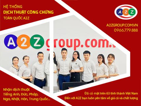 Công ty dịch thuật A2Z là đơn vị cung cấp dịch vụ dịch thuật hàng đầu tại Việt Nam. Với đội ngũ nhân viên chuyên nghiệp có thể dịch thuật hơn 50 ngôn ngữ trên thế giới đảm bảo quý khách hàng sẽ được hài lòng về chất lượng.